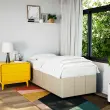 Zagotovite si boljši spanec s tem posteljnim okvirjem! Je prijeten dodatek za vsako spalnico. Mehak in trpežen material: Tkanina iz poliestra združuje mehkobo, zračnost in trpežnost ter vam zagotavlja popolno udobje in prijetnost.Letvice za optimalno podporo: Ta posteljni okvir je opremljen z letvicami, ki zagotavljajo osnovno podporo in zračnost vašega ležišča.Stabilne in vzdržljive noge: Ta postelja je podprta z robustnimi nogami, ki zagotavljajo stabilnost, varnost in trdnost. Dobro je vedeti:Vzmetnica ni priložena tej postelji. Ponujamo različno izbiro ležišč. V naši trgovini si lahko ogledate ustrezne vzmetnice.Barva: KremMaterial: Blago (100 % poliester), vezan les, konstruiran lesDimenzije: 200 x 80 x 46 cm (D x Š x V)Velikost primerne vzmetnice: 80 x 200 cm (Š x D) (vzmetnica ni priložena)Utrjene plastične nogicePotrebno sestavljanje: Da 3284795