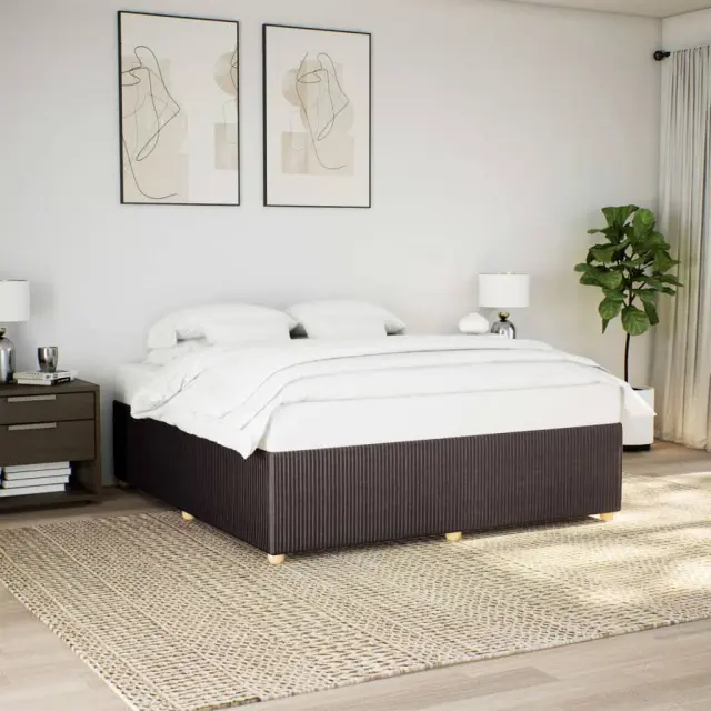 Zagotovite si boljši spanec s tem posteljnim okvirjem! Je prijeten dodatek za vsako spalnico. Mehak in trpežen material: Tkanina iz poliestra združuje mehkobo, zračnost in trpežnost ter vam zagotavlja popolno udobje in prijetnost.Letvice za optimalno podporo: Ta posteljni okvir je opremljen z letvicami, ki zagotavljajo osnovno podporo in zračnost vašega ležišča.Stabilne in vzdržljive noge: Ta postelja je podprta z robustnimi nogami, ki zagotavljajo stabilnost, varnost in trdnost. Dobro je vedeti:Vzmetnica ni priložena tej postelji. Ponujamo različno izbiro ležišč. V naši trgovini si lahko ogledate ustrezne vzmetnice.Barva: Temno rjavaMaterial: Tkanina (100 % poliester), vezan les, inženirski les, trdna borovinaDimenzije: 200 x 200 x 46 cm (D x Š x V)Velikost primerne vzmetnice: 200 x 200 cm (Š x D) (vzmetnica ni priložena)Utrjene plastične nogicePodporne noge iz trdnega borovega lesaPotrebno sestavljanje: Da 3284966