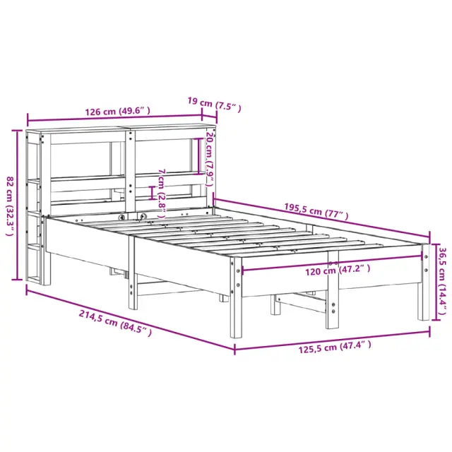 Zagotovite si boljši spanec s tem posteljnim okvirjem! Je prijeten dodatek za vsako spalnico. Stabilen in dolgotrajen okvir: Trdna borovina je znana po svoji trdnosti in trajnosti. Ravni vzorci in značilni vozli prispevajo k njenemu rustikalnemu čaru.Podnožje z letvami za optimalno podporo: Za podporo in zračnost ležišča je posteljni okvir opremljen z letvenim dnom.Vsestransko vzglavje: Ta posteljni okvir je opremljen z vzglavjem, ki zagotavlja odlično oporo hrbtu, ko sedite v postelji in berete ali gledate televizijo, hkrati pa služi tudi kot dekorativni element.Veliko prostora za shranjevanje: To elegantno vzglavje ima dve priročni polici, ki ponujata veliko prostora za shranjevanje, da bodo vaše večerne potrebščine na dosegu roke. Dobro je vedeti:Vzmetnica ni priložena tej postelji. Ponujamo različno izbiro ležišč. V naši trgovini si lahko ogledate ustrezne vzmetnice.Material posteljnega okvirja: Trdna borovina (neobdelana)Material letvic: Vezan lesCelotne dimenzije: 214,5 x 126 x 82 cm (D x Š x V)Velikost primerne vzmetnice: 120 x 190 cm (Š x D) (vzmetnica ni priložena)S policami za shranjevanjePotrebno sestavljanje: DaPaket vsebuje:1 x Posteljni okvir1 x Vzglavje 3306165