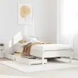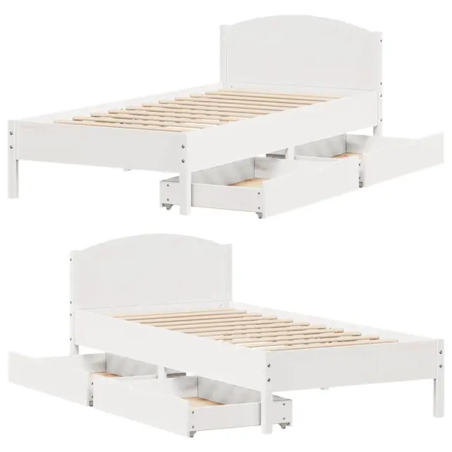 Zagotovite si boljši spanec s tem posteljnim okvirjem! Je prijeten dodatek za vsako spalnico. Stabilen in dolgotrajen okvir: Trdna borovina je znana po svoji trdnosti in trajnosti. Ravni vzorci in značilni vozli prispevajo k njenemu rustikalnemu čaru.Podnožje z letvami za optimalno podporo: Za podporo in zračnost ležišča je posteljni okvir opremljen z letvenim dnom.Vsestransko vzglavje: Ta posteljni okvir je opremljen z vzglavjem, ki zagotavlja odlično oporo hrbtu, ko sedite v postelji in berete ali gledate televizijo, hkrati pa služi tudi kot dekorativni element.Popolnoma izkoriščen prostor: Ta posteljni okvir ima spodaj dva predala, ki omogočata shranjevanje predmetov, kot so dodatna posteljnina, sezonska oblačila in igrače.Preprosto manevriranje: Ta predal za shranjevanje pod posteljo ima štiri kolesa, ki zagotavljajo gladko in lahkotno manevriranje pri drsenju pod posteljo in izpod nje. Dobro je vedeti:Vzmetnica ni priložena tej postelji. Ponujamo različno izbiro ležišč. V naši trgovini si lahko ogledate ustrezne vzmetnice.Potrebno sestavljanje: DaPosteljni okvir z vzglavjem:Barva: BelaMaterial: Trdna borovinaMaterial letvic: Vezan lesDimenzije: 205,5 x 105,5 x 74,5 cm (D x Š x V)Velikost primerne vzmetnice: 100 x 200 cm (Š x D) (vzmetnica ni priložena)Predal:Barva: BelaMaterial: Trdna borovinaZunanje dimenzije: 95 x 55 x 17 cm (Š x G x V)Notranje dimenzije: 86,5 x 52,5 x 10 cm (Š x G x V)Maks. nosilnost (vsaka): 20 kgS štirimi kolesiPaket vsebuje:1 x Posteljni okvir z vzglavjem2 x Predal 3301843