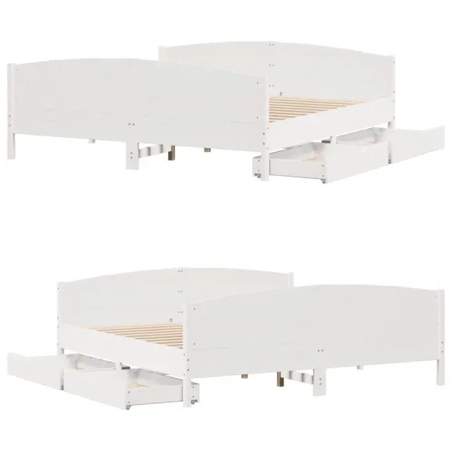 Zagotovite si boljši spanec s tem posteljnim okvirjem! Je prijeten dodatek za vsako spalnico. Stabilen in dolgotrajen okvir: Trdna borovina je znana po svoji trdnosti in trajnosti. Ravni vzorci in značilni vozli prispevajo k njenemu rustikalnemu čaru.Podnožje z letvami za optimalno podporo: Za podporo in zračnost ležišča je posteljni okvir opremljen z letvenim dnom.Vsestransko vzglavje: Ta posteljni okvir je opremljen z vzglavjem, ki zagotavlja odlično oporo hrbtu, ko sedite v postelji in berete ali gledate televizijo, hkrati pa služi tudi kot dekorativni element.Popolnoma izkoriščen prostor: Ta posteljni okvir ima spodaj dva predala, ki omogočata shranjevanje predmetov, kot so dodatna posteljnina, sezonska oblačila in igrače.Preprosto manevriranje: Ta predal za shranjevanje pod posteljo ima štiri kolesa, ki zagotavljajo gladko in lahkotno manevriranje pri drsenju pod posteljo in izpod nje. Dobro je vedeti:Vzmetnica ni priložena tej postelji. Ponujamo različno izbiro ležišč. V naši trgovini si lahko ogledate ustrezne vzmetnice.Potrebno sestavljanje: DaPosteljni okvir:Barva: BelaMaterial: Trdna borovinaMaterial letvic: Vezan lesDimenzije: 205,5 x 205,5 x 74,5 cm (D x Š x V)Velikost primerne vzmetnice: 200 x 200 cm (Š x D) (vzmetnica ni priložena)Predal:Barva: BelaMaterial: Trdna borovinaZunanje dimenzije: 95 x 55 x 17 cm (Š x G x V)Notranje dimenzije: 86,5 x 52,5 x 10 cm (Š x G x V)Maks. nosilnost (vsaka): 20 kgS štirimi kolesi Paket vsebuje:1 x Posteljni okvir2 x Predal 3301777