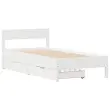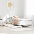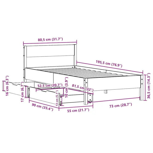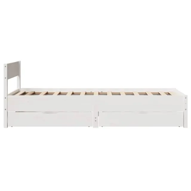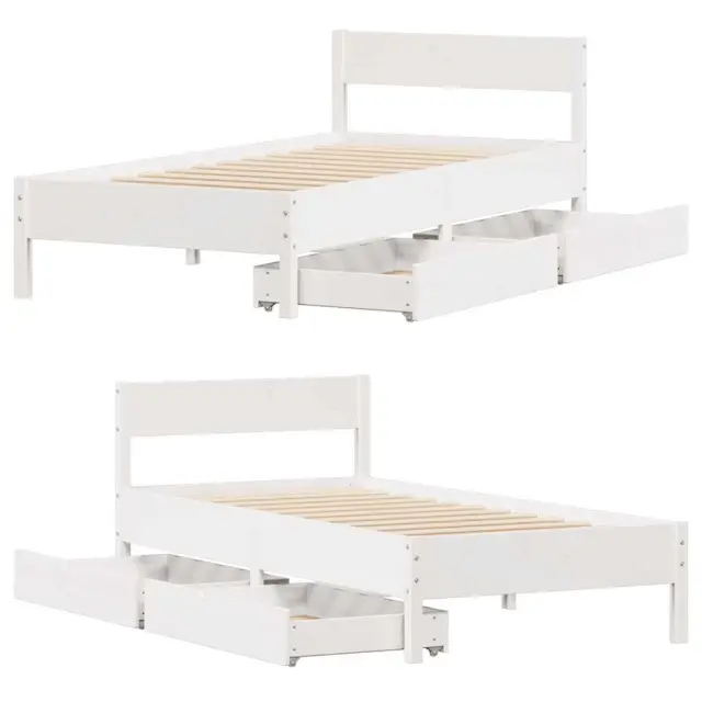 Zagotovite si boljši spanec s tem posteljnim okvirjem! Je prijeten dodatek za vsako spalnico. Stabilen in dolgotrajen okvir: Trdna borovina je znana po svoji trdnosti in trajnosti. Ravni vzorci in značilni vozli prispevajo k njenemu rustikalnemu čaru.Podnožje z letvami za optimalno podporo: Za podporo in zračnost ležišča je posteljni okvir opremljen z letvenim dnom.Vsestransko vzglavje: Ta posteljni okvir je opremljen z vzglavjem, ki zagotavlja odlično oporo hrbtu, ko sedite v postelji in berete ali gledate televizijo, hkrati pa služi tudi kot dekorativni element.Popolnoma izkoriščen prostor: Ta posteljni okvir ima spodaj dva predala, ki omogočata shranjevanje predmetov, kot so dodatna posteljnina, sezonska oblačila in igrače.Preprosto manevriranje: Ta predal za shranjevanje pod posteljo ima štiri kolesa, ki zagotavljajo gladko in lahkotno manevriranje pri drsenju pod posteljo in izpod nje. Dobro je vedeti:Vzmetnica ni priložena tej postelji. Ponujamo različno izbiro ležišč. V naši trgovini si lahko ogledate ustrezne vzmetnice.Potrebno sestavljanje: DaPosteljni okvir z vzglavjem:Barva: BelaMaterial: Trdna borovinaMaterial letvic: Vezan lesDimenzije: 195,5 x 80,5 x 71,5 cm (D x Š x V)Velikost primerne vzmetnice: 75 x 190 cm (Š x D) (vzmetnica ni priložena)Predal:Barva: BelaMaterial: Trdna borovinaZunanje dimenzije: 90 x 55 x 17 cm (Š x G x V)Notranje dimenzije: 81,5 x 52,5 x 10 cm (Š x G x V)Maks. nosilnost (vsaka): 20 kgS štirimi kolesi Paket vsebuje:1 x Posteljni okvir z vzglavjem2 x Predal 3301774