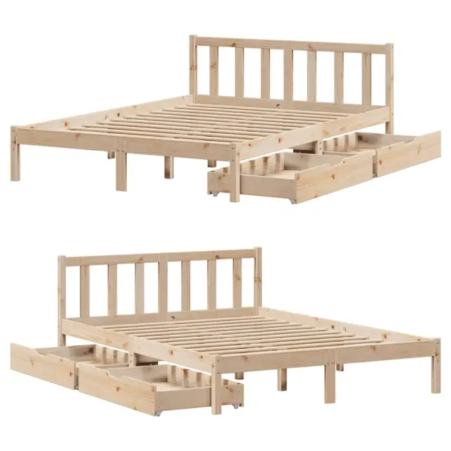 Zagotovite si boljši spanec s tem posteljnim okvirjem! Je prijeten dodatek za vsako spalnico. Stabilen in dolgotrajen okvir: Trdna borovina je znana po svoji trdnosti in trajnosti. Ravni vzorci in značilni vozli prispevajo k njenemu rustikalnemu čaru.Podnožje z letvami za optimalno podporo: Za podporo in zračnost ležišča je posteljni okvir opremljen z letvenim dnom.Popolnoma izkoriščen prostor: Ta posteljni okvir ima spodaj dva predala, ki omogočata shranjevanje predmetov, kot so dodatna posteljnina, sezonska oblačila in igrače.Preprosto manevriranje: Ta predal za shranjevanje pod posteljo ima štiri kolesa, ki zagotavljajo gladko in lahkotno manevriranje pri drsenju pod posteljo in izpod nje. Dobro je vedeti:Vzmetnica ni priložena tej postelji. Ponujamo različno izbiro ležišč. V naši trgovini si lahko ogledate ustrezne vzmetnice.Material: Trdna borovina (neobdelana)Potrebno sestavljanje: DaPostelja:Dimenzije: 195,5 x 145,5 x 69,5 cm (D x Š x V)Višina spalnega prostora, merjena od tal: 31 cmVišina prostora pod posteljo: 21 cmVelikost primerne vzmetnice: 140 x 190 cm (Š x D) (vzmetnica ni priložena)Največja nosilnost (z ležiščem): 100 kgZ letvenim podomPredal:Zunanje dimenzije: 90 x 55 x 17 cm (Š x G x V)Notranje dimenzije: 81,5 x 52,5 x 10 cm (Š x G x V)Maks. nosilnost (vsaka): 20 kgS štirimi kolesiPaket vsebuje:1 x Posteljni okvir z letvenim podnožjem2 x Predal 3301467