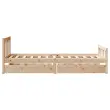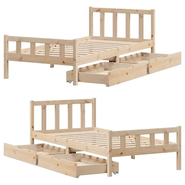 Zagotovite si boljši spanec s tem posteljnim okvirjem! Je prijeten dodatek za vsako spalnico. Stabilen in dolgotrajen okvir: Trdna borovina je znana po svoji trdnosti in trajnosti. Ravni vzorci in značilni vozli prispevajo k njenemu rustikalnemu čaru.Podnožje z letvami za optimalno podporo: Za podporo in zračnost ležišča je posteljni okvir opremljen z letvenim dnom.Popolnoma izkoriščen prostor: Ta posteljni okvir ima spodaj dva predala, ki omogočata shranjevanje predmetov, kot so dodatna posteljnina, sezonska oblačila in igrače.Preprosto manevriranje: Ta predal za shranjevanje pod posteljo ima štiri kolesa, ki zagotavljajo gladko in lahkotno manevriranje pri drsenju pod posteljo in izpod nje. Dobro je vedeti:Vzmetnica ni priložena tej postelji. Ponujamo različno izbiro ležišč. V naši trgovini si lahko ogledate ustrezne vzmetnice.Material: Trdna borovina (neobdelana)Potrebno sestavljanje: DaPostelja:Dimenzije: 195,5 x 95,5 x 69,5 cm (D x Š x V)Višina spalnega prostora, merjena od tal: 30 cmVišina prostora pod posteljo: 21 cmVelikost primerne vzmetnice: 90 x 190 cm (Š x D) (vzmetnica ni priložena)Največja nosilnost (z ležiščem): 100 kgZ letvenim podomPredal:Zunanje dimenzije: 90 x 55 x 17 cm (Š x G x V)Notranje dimenzije: 81,5 x 52,5 x 10 cm (Š x G x V)Maks. nosilnost (vsaka): 20 kgS štirimi kolesiPaket vsebuje:1 x Posteljni okvir z letvenim podnožjem2 x Predal 3301565