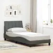 S tem posteljnim okvirjem z vzglavnikom si zagotovite mirnejši spanec! Trpežno blago: Blago zagotavlja preprost in čist videz, poleg tega pa je zračno in trpežno.Podporne noge: Postelja je podprta s čvrstimi nogami, ki zagotavljajo njeno stabilnost, varnost in trdnost.Letvice iz vezanega lesa: Letvice iz vezanega lesa omogočajo dobro porazdelitev teže in zagotavljajo, da vzmetnica ostane na mestu ob vsakem zasuku in obračanju med spanjem.Odlična podpora: Vzglavna stranica je napolnjena s PP vlakni za izjemno mehkobo in optimalno udobje ter zagotavlja odlično podporo hrbtu, ko sedite v postelji in berete ali gledate televizijo.LED osvetlitev za prijeten ambient: To posteljo odlikuje LED osvetlitev, ki jo je mogoče preprosto nastaviti in tako ustvariti posebno svetlobno predstavo. Prilagodite lahko načine, barve in svetlost ter tako izboljšate vzdušje v notranjem prostoru. Dobro je vedeti:Vzmetnica ni priložena tej postelji. Ponujamo različno izbiro ležišč. V naši trgovini si lahko ogledate ustrezne vzmetnice.Izdelek ima priključek USB, ki zahteva certificiran vir napajanja 5 V USB (ni priložen).Režete lahko samo del s simbolom škarij in samo del z USB bo deloval kot prej.Posteljni okvir:Barva: Temno sivaMaterial: Tkanina (100 % poliester), kovina, vezan les, inženirski lesCelotne dimenzije: 218 x 95 x 74,5 cm (D x Š x V)Velikost primerne vzmetnice: 90 x 200 cm (Š x D) (vzmetnica ni priložena)Potrebno sestavljanje: DaOblazinjeno vzglavje:Barva: Temno sivaMaterial: Blago (100 % poliester)Material polnila: PP vlaknaDimenzije: 90 x 3 x 45 cm (D x Š x V)LED trak s silikonsko cevjo in pipo:Dolžina: 55 cmNapetost: DC 5 VDolžina kabla USB : 150 cmDolžina električnega kabla: 30 cmIP ocena: IP65S simbolom za rezanje s škarjamiPaket vsebuje:1 x Posteljni okvir1 x Oblazinjeno vzglavje1 x LED trak 3310434