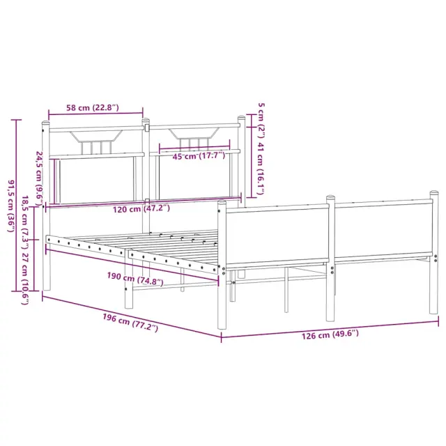 Zagotovite si boljši spanec s tem posteljnim okvirjem! Je prijeten dodatek za vsako spalnico. Stabilen in dolgotrajen okvir: Jeklo je močno, stabilno in trpežno, zato je idealna izbira za številne aplikacije, od proizvodnje pohištva do gradbeništva.Funkcionalno vzglavje in podnožje: Vzglavje in podnožje posteljnega dna ohranjata ležišče na mestu. Poleg tega vzglavje zagotavlja odlično oporo hrbtu, ko sedite v postelji in berete ali gledate televizijo.Dodaten prostor za shranjevanje: Za udobje ima posteljni podstavek pod seboj dodaten prostor, v katerem lahko shranite škatle za shranjevanje, ki niso vidne.Podnožje z letvami za optimalno podporo: Kovinski posteljni okvir je opremljen z letvenim dnom, ki zagotavlja oporo in zračnost ležišča. Dobro je vedeti:Vzmetnica ni priložena tej postelji. Ponujamo različno izbiro ležišč. V naši trgovini si lahko ogledate ustrezne vzmetnice.Barva: Dimljeni hrastMaterial: Inženirski les in jekloCelotne dimenzije: 196 x 126 x 91,5 cm (D x Š x V)Višina prostora pod posteljo: 27 cmVelikost primerne vzmetnice: 120 x 190 cm (Š x D) (vzmetnica ni priložena)Z vzglavjem in podnožjemPotrebno sestavljanje: Da 4106923