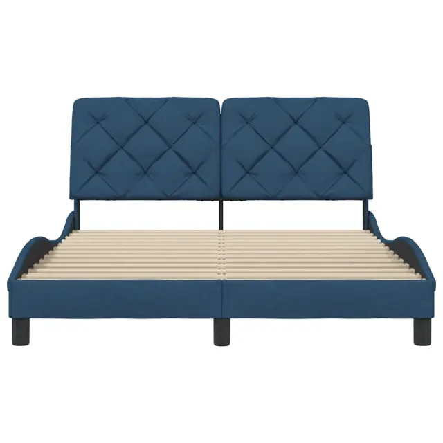 Zagotovite si boljši spanec s tem posteljnim okvirjem! Je prijeten dodatek za vsako spalnico. Mehak in trpežen material: Tkanina iz poliestra ponuja kombinacijo mehkobe, zračnosti in trpežnosti ter vam zagotavlja popolno udobje in prijetnost.Letvice za optimalno podporo: Ta posteljni okvir je opremljen z letvicami, ki zagotavljajo osnovno podporo in zračnost vašega ležišča.Vsestransko vzglavje: Ta posteljni okvir je opremljen z vzglavjem, ki zagotavlja odlično oporo hrbtu, ko sedite v postelji in berete ali gledate televizijo, hkrati pa služi tudi kot dekorativni element.Priročna zasnova: Vzglavna stranica ima zadrgo za preprosto namestitev, pripenjala na zadnji strani pa se lahko uporabijo za pritrditev LED lučk.Valovita stranica: Valoviti videz posteljnega okvirja je eleganten in prefinjen. Dekorju v vašem domu dodaja sodoben in eleganten pridih ter tako postane osrednja točka spalnice. Dobro je vedeti:Vzmetnica ni priložena tej postelji. Ponujamo različno izbiro ležišč. V naši trgovini si lahko ogledate ustrezne vzmetnice.Posteljni okvir:Barva: ModraMaterial: Tkanina (100 % poliester), kovina, vezan les, inženirski lesCelotne dimenzije: 218 x 145 x 74,5 cm (D x Š x V)Velikost primerne vzmetnice: 140 x 200 cm (Š x D) (vzmetnica ni priložena)Oblazinjeno vzglavje:Barva: ModraMaterial: Blago (100 % poliester)Material polnila: PP vlaknaDimenzije: 142 x 6 x 48 cm (D x Š x V)Paket vsebuje:1 x Posteljni okvir1 x Oblazinjeno vzglavje 3310607