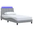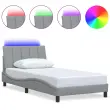 S tem posteljnim okvirjem z vzglavnikom si zagotovite mirnejši spanec! Trpežno blago: Blago zagotavlja preprost in čist videz, poleg tega pa je zračno in trpežno.Podporne noge: Postelja je podprta s čvrstimi nogami, ki zagotavljajo njeno stabilnost, varnost in trdnost.Letvice iz vezanega lesa: Letvice iz vezanega lesa omogočajo dobro porazdelitev teže in zagotavljajo, da vzmetnica ostane na mestu ob vsakem zasuku in obračanju med spanjem.Odlična podpora: Vzglavna stranica je napolnjena s PP vlakni za izjemno mehkobo in optimalno udobje ter zagotavlja odlično podporo hrbtu, ko sedite v postelji in berete ali gledate televizijo.LED osvetlitev za prijeten ambient: To posteljo odlikuje LED osvetlitev, ki jo je mogoče preprosto nastaviti in tako ustvariti posebno svetlobno predstavo. Prilagodite lahko načine, barve in svetlost ter tako izboljšate vzdušje v notranjem prostoru. Dobro je vedeti:Vzmetnica ni priložena tej postelji. Ponujamo različno izbiro ležišč. V naši trgovini si lahko ogledate ustrezne vzmetnice.Izdelek ima priključek USB, ki zahteva certificiran vir napajanja 5 V USB (ni priložen).Režete lahko samo del s simbolom škarij in samo del z USB bo deloval kot prej.Posteljni okvir:Barva: Svetlo sivaMaterial: Tkanina (100 % poliester), kovina, vezan les, inženirski lesCelotne dimenzije: 218 x 105 x 74,5 cm (D x Š x V)Velikost primerne vzmetnice: 100 x 200 cm (Š x D) (vzmetnica ni priložena)Potrebno sestavljanje: DaOblazinjeno vzglavje:Barva: Svetlo sivaMaterial: Blago (100 % poliester)Material polnila: PP vlaknaDimenzije: 100 x 3 x 45 cm (D x Š x V)LED trak s silikonsko cevjo in pipo:Dolžina: 55 cmNapetost: DC 5 VDolžina kabla USB : 150 cmDolžina električnega kabla: 30 cmIP ocena: IP65S simbolom za rezanje s škarjamiPaket vsebuje:1 x Posteljni okvir1 x Oblazinjeno vzglavje1 x LED trak 3310440