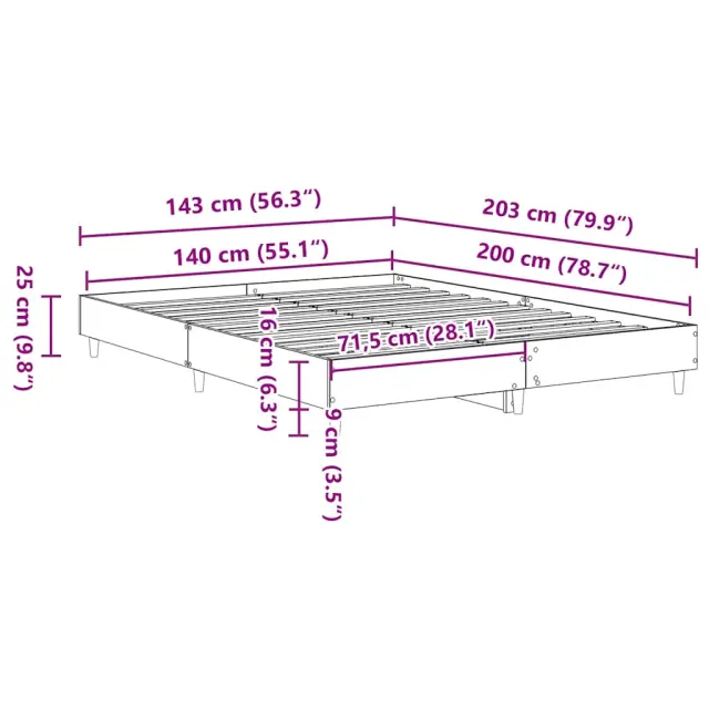 Zagotovite si boljši spanec s tem posteljnim okvirjem! Je prijeten dodatek za vsako spalnico. Vzdržljiv material: Inženirski les se ponaša z izjemno kakovostjo, gladko površino ter močjo, stabilnostjo in odpornostjo na vlago.Podnožje z letvami za optimalno podporo: Za podporo in zračnost ležišča je posteljni okvir opremljen z letvenim dnom.Stabilne in vzdržljive noge: Ta postelja ima trdne noge, ki zagotavljajo stabilnost, varnost in trdnost.Dobro je vedeti:Vzmetnica ni priložena tej postelji. Ponujamo različno izbiro ležišč. V naši trgovini si lahko ogledate ustrezne vzmetnice.Barva: Dimljeni hrastMaterial posteljnega okvirja: Inženirski les, trden les evkaliptusaMaterial letvic: Vezan lesCelotne dimenzije: 203 x 143 x 25 cm (D x Š x V)Velikost primerne vzmetnice: 140 x 200 cm (Š x D) (vzmetnica ni priložena)Potrebno sestavljanje: Da 3328721