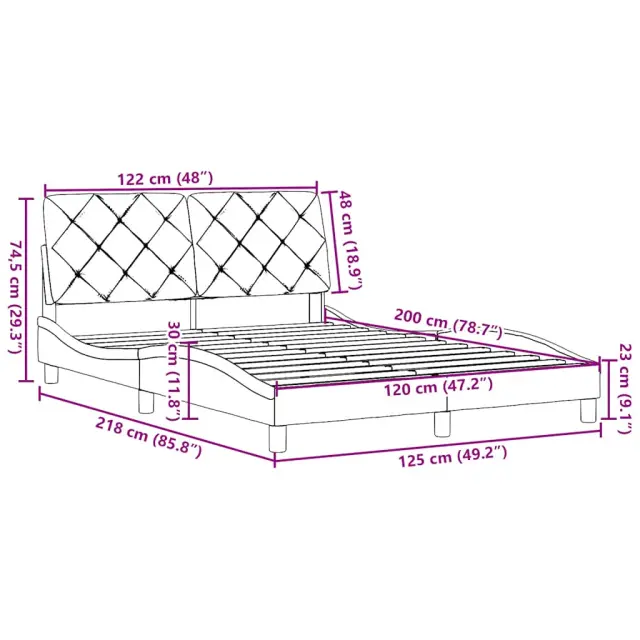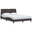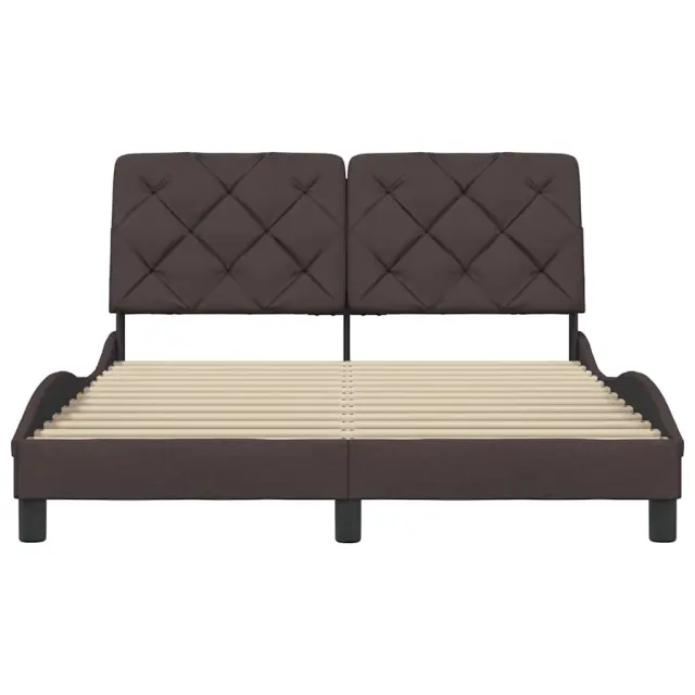 Zagotovite si boljši spanec s tem posteljnim okvirjem! Je prijeten dodatek za vsako spalnico. Mehak in trpežen material: Tkanina iz poliestra ponuja kombinacijo mehkobe, zračnosti in trpežnosti ter vam zagotavlja popolno udobje in prijetnost.Letvice za optimalno podporo: Ta posteljni okvir je opremljen z letvicami, ki zagotavljajo osnovno podporo in zračnost vašega ležišča.Vsestransko vzglavje: Ta posteljni okvir je opremljen z vzglavjem, ki zagotavlja odlično oporo hrbtu, ko sedite v postelji in berete ali gledate televizijo, hkrati pa služi tudi kot dekorativni element.Priročna zasnova: Vzglavna stranica ima zadrgo za preprosto namestitev, pripenjala na zadnji strani pa se lahko uporabijo za pritrditev LED lučk.Valovita stranica: Valoviti videz posteljnega okvirja je eleganten in prefinjen. Dekorju v vašem domu dodaja sodoben in eleganten pridih ter tako postane osrednja točka spalnice. Dobro je vedeti:Vzmetnica ni priložena tej postelji. Ponujamo različno izbiro ležišč. V naši trgovini si lahko ogledate ustrezne vzmetnice.Posteljni okvir:Barva: Temno rjavaMaterial: Tkanina (100 % poliester), kovina, vezan les, inženirski lesCelotne dimenzije: 218 x 125 x 74,5 cm (D x Š x V)Velikost primerne vzmetnice: 120 x 200 cm (Š x D) (vzmetnica ni priložena)Oblazinjeno vzglavje:Barva: Temno rjavaMaterial: Blago (100 % poliester)Material polnila: PP vlaknaDimenzije: 122 x 6 x 48 cm (D x Š x V)Paket vsebuje:1 x Posteljni okvir1 x Oblazinjeno vzglavje 3310590