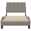 Zagotovite si boljši spanec s tem posteljnim okvirjem! Je prijeten dodatek za vsako spalnico. Mehak in trpežen material: Tkanina iz poliestra ponuja kombinacijo mehkobe, zračnosti in trpežnosti ter vam zagotavlja popolno udobje in prijetnost.Letvice za optimalno podporo: Ta posteljni okvir je opremljen z letvicami, ki zagotavljajo osnovno podporo in zračnost vašega ležišča.Vsestransko vzglavje: Ta posteljni okvir je opremljen z vzglavjem, ki zagotavlja odlično oporo hrbtu, ko sedite v postelji in berete ali gledate televizijo, hkrati pa služi tudi kot dekorativni element.Priročna zasnova: Vzglavna stranica ima zadrgo za preprosto namestitev, pripenjala na zadnji strani pa se lahko uporabijo za pritrditev LED lučk.Valovita stranica: Valoviti videz posteljnega okvirja je eleganten in prefinjen. Dekorju v vašem domu dodaja sodoben in eleganten pridih ter tako postane osrednja točka spalnice. Dobro je vedeti:Vzmetnica ni priložena tej postelji. Ponujamo različno izbiro ležišč. V naši trgovini si lahko ogledate ustrezne vzmetnice.Posteljni okvir:Barva: TaupeMaterial: Tkanina (100 % poliester), kovina, vezan les, inženirski lesCelotne dimenzije: 208 x 95 x 74,5 cm (D x Š x V)Velikost primerne vzmetnice: 90 x 190 cm (Š x D) (vzmetnica ni priložena)Oblazinjeno vzglavje:Barva: TaupeMaterial: Blago (100 % poliester)Material polnila: PP vlaknaDimenzije: 90 x 3 x 45 cm (D x Š x V)Paket vsebuje:1 x Posteljni okvir1 x Oblazinjeno vzglavje 3310360