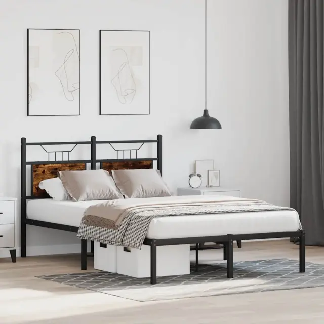 Zagotovite si boljši spanec s tem posteljnim okvirjem! Je prijeten dodatek za vsako spalnico. Stabilen in dolgotrajen okvir: Jeklo je močno, stabilno in trpežno, zato je idealna izbira za številne aplikacije, od proizvodnje pohištva do gradbeništva.Vsestransko vzglavje: Ta postelja je opremljena z vzglavjem, ki zagotavlja odlično oporo hrbtu, ko sedite v postelji in berete ali gledate televizijo, hkrati pa služi tudi kot dekorativni element.Dodaten prostor za shranjevanje: Za udobje ima posteljni podstavek pod seboj dodaten prostor, v katerem lahko shranite škatle za shranjevanje, ki niso vidne.Podnožje z letvami za optimalno podporo: Kovinski posteljni okvir je opremljen z letvenim dnom, ki zagotavlja oporo in zračnost ležišča. Dobro je vedeti:Vzmetnica ni priložena tej postelji. Ponujamo različno izbiro ležišč. V naši trgovini si lahko ogledate ustrezne vzmetnice.Barva: Dimljeni hrastMaterial: Inženirski les in jekloCelotne dimenzije: 207 x 126 x 91,5 cm (D x Š x V)Višina prostora pod posteljo: 27 cmVelikost primerne vzmetnice: 120 x 200 cm (Š x D) (vzmetnica ni priložena)Z vzglavjemPotrebno sestavljanje: Da 4106741