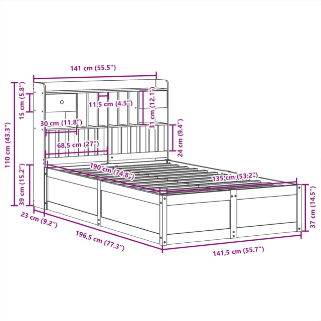 • Dimenzije vzglavja: 141 x 23 x 110 cm (D x Š x V)
