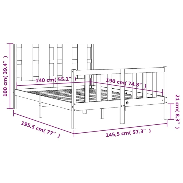 vidaXL Posteljni okvir brez vzmetnice 140x190 cm trdna borovina