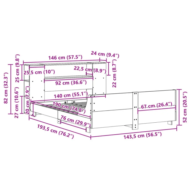 • Velikost primerne vzmetnice: 140 x 190 cm (Š x D) (vzmetnica ni priložena)