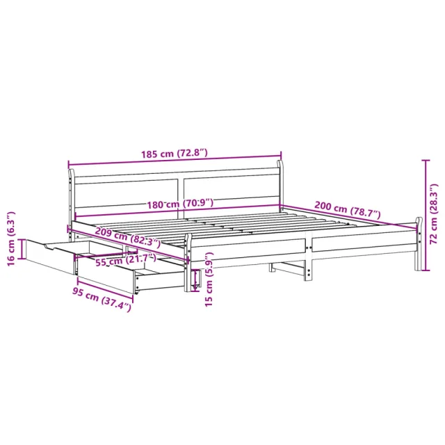 vidaXL Posteljni okvir brez vzmetnice 180x200 cm trdna borovina