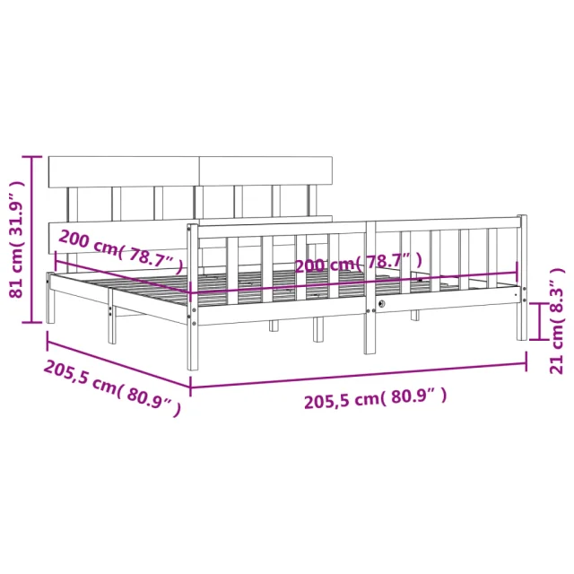 • Celotne dimenzije postelje: 205,5 x 205,5 x 81 cm (D x Š x V)