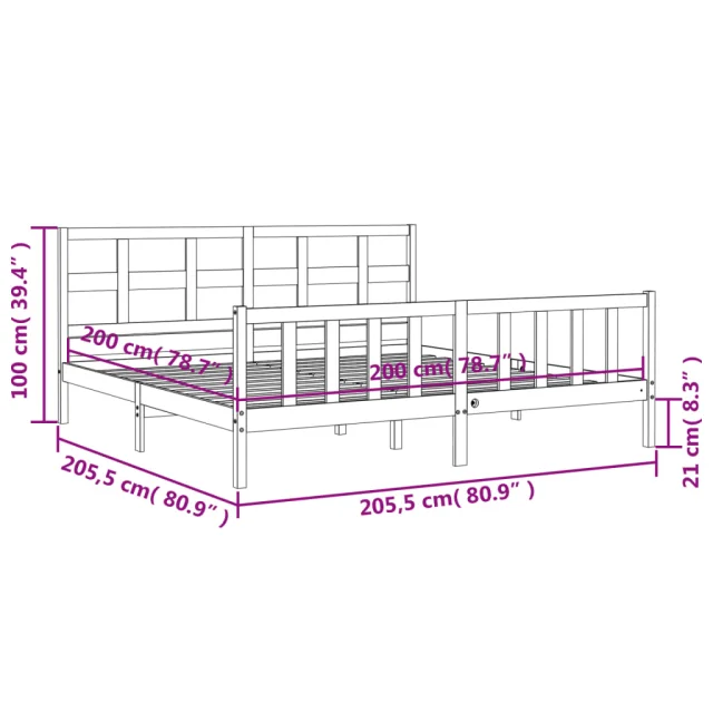 vidaXL Posteljni okvir brez vzmetnice 200x200 cm trdna borovina