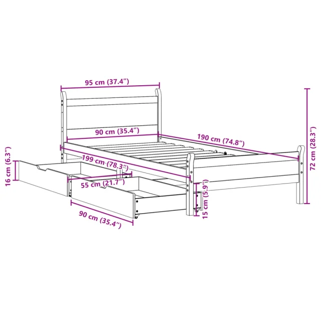 vidaXL Posteljni okvir brez vzmetnice 90x190 cm trdna borovina