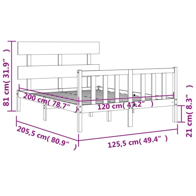 • Celotne dimenzije postelje: 205,5 x 125,5 x 81 cm (D x Š x V)