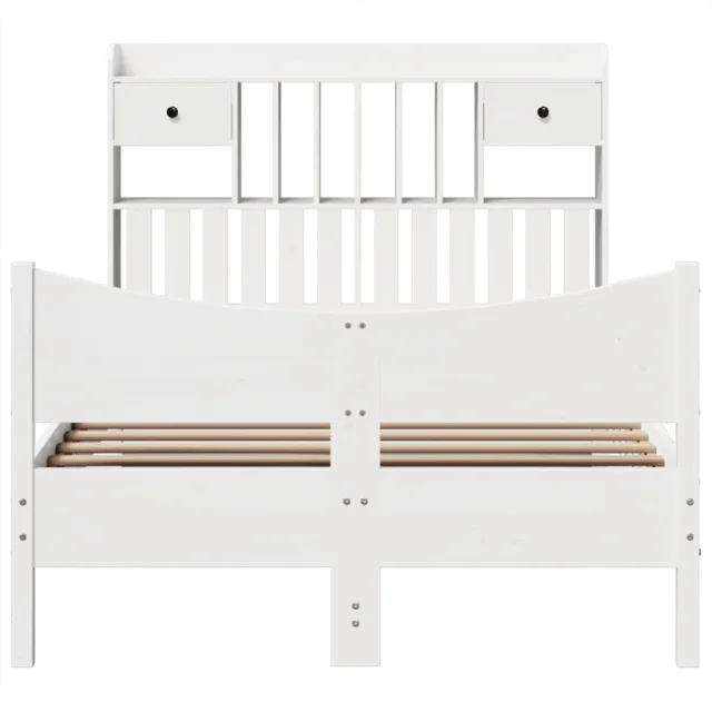 vidaXL Posteljni okvir brez vzmetnice bel 135x190 cm trdna borovina
