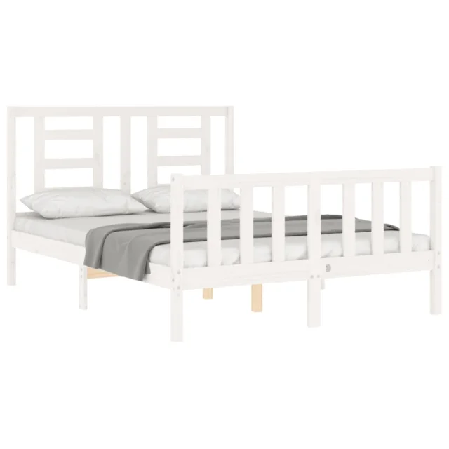 vidaXL Posteljni okvir brez vzmetnice bel 140x190 cm trdna borovina