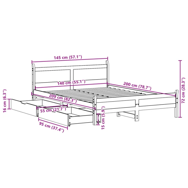 • Stabilen in dolgotrajen okvir: Trdna borovina je znana po svoji trdnosti in trajnosti. Ravni vzorci in značilni vozli prispevajo k njenemu rustikalnemu čaru.