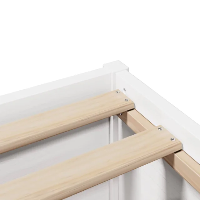 • Močan posteljni okvir: Lesen okvir zagotavlja trdnost in stabilnost. Letvice iz vezanega lesa omogočajo dobro porazdelitev teže in zagotavljajo, da vzmetnica ostane na mestu ob vsakem zasuku in obračanju med spanjem.