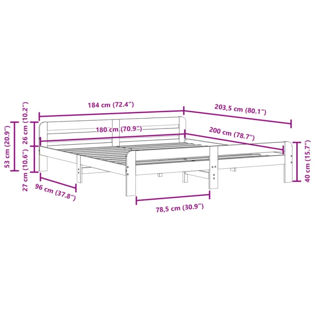 • Celotne dimenzije postelje: 203,5 x 184 x 53 cm (D x Š x V)