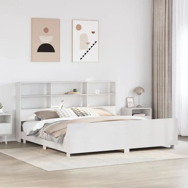 vidaXL Posteljni okvir brez vzmetnice bel 180x200 cm trdna borovina