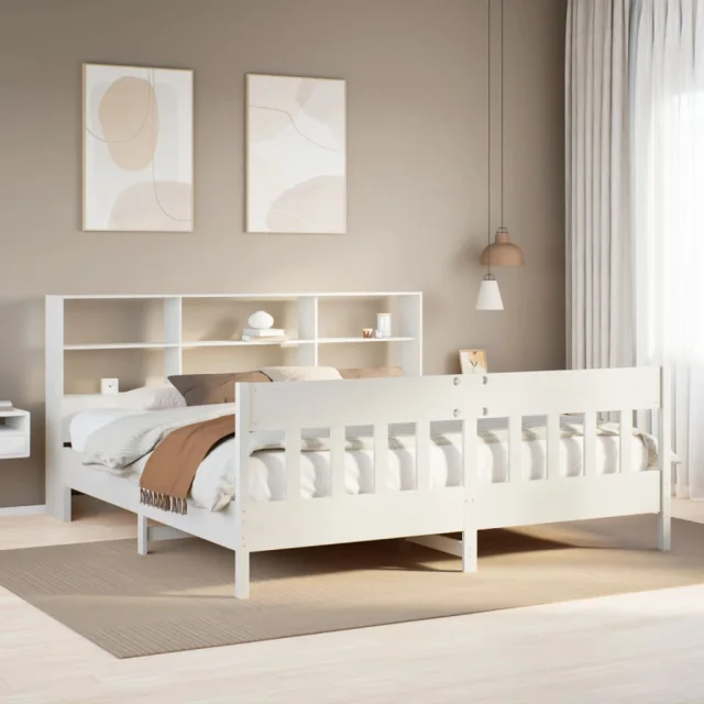vidaXL Posteljni okvir brez vzmetnice bel 180x200 cm trdna borovina
