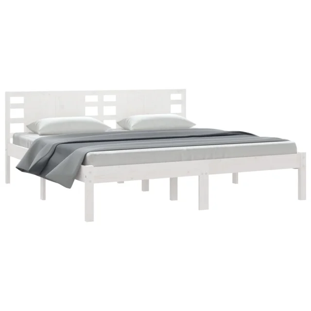 vidaXL Posteljni okvir brez vzmetnice bel 200x200 cm trdna borovina