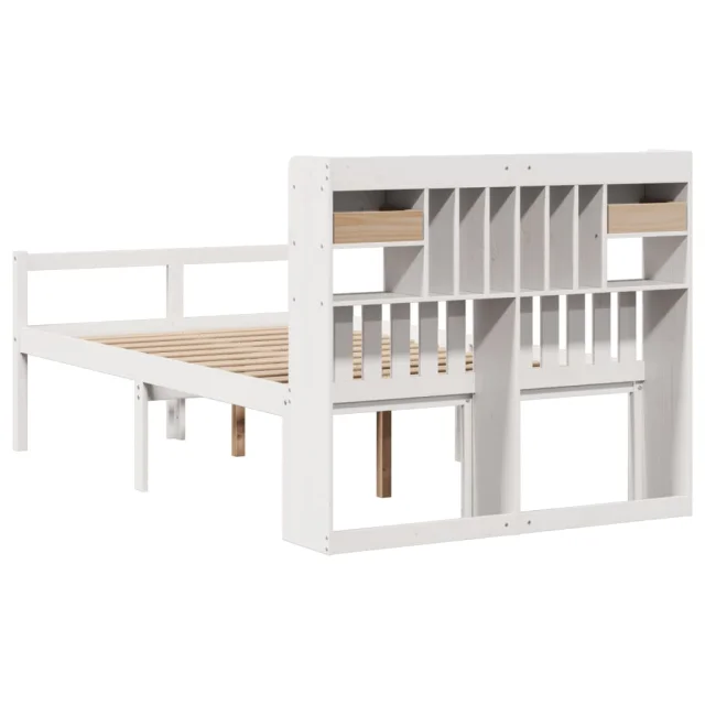 vidaXL Posteljni okvir brez vzmetnice bela 135x190 cm trdna borovina