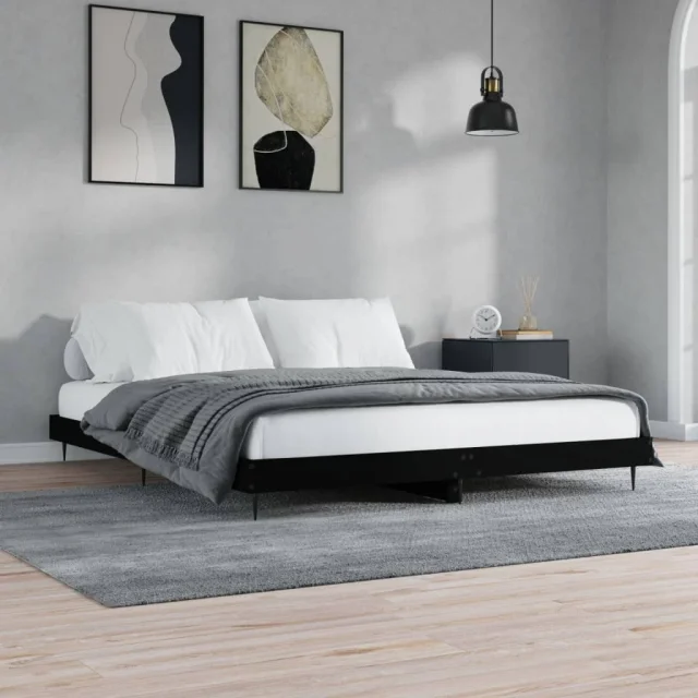 vidaXL Posteljni okvir brez vzmetnice črn 180x200 cm inženirski les