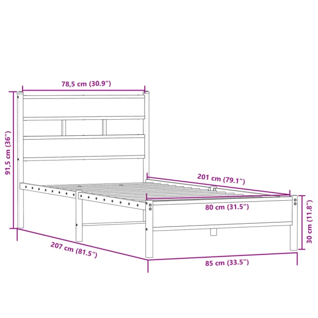 • Velikost primerne vzmetnice: 80 x 200 cm (Š x D) (vzmetnica ni priložena)