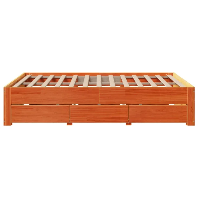 vidaXL Posteljni okvir brez vzmetnice s predali 140x190 cm borovina