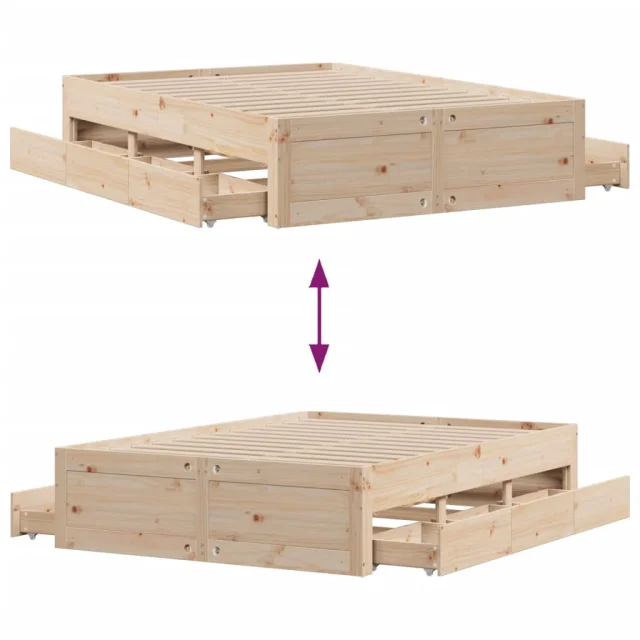 vidaXL Posteljni okvir brez vzmetnice s predali 150x200 cm borovina