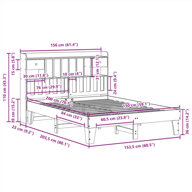 • Velikost primerne vzmetnice: 150 x 200 cm (Š x D) (vzmetnica ni priložena)