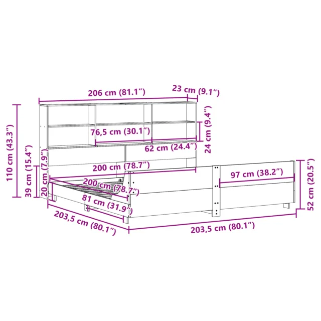 • Velikost primerne vzmetnice: 200 x 200 cm (Š x D) (vzmetnica ni priložena)