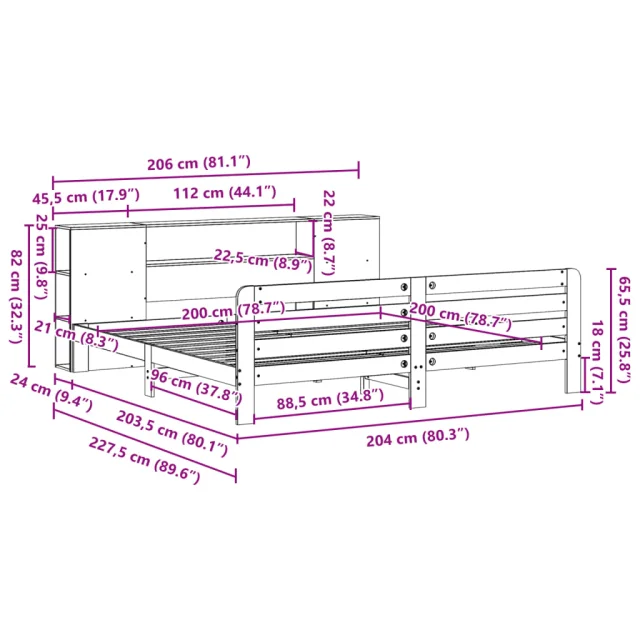 • Velikost primerne vzmetnice: 200 x 200 cm (Š x D) (vzmetnica ni priložena)