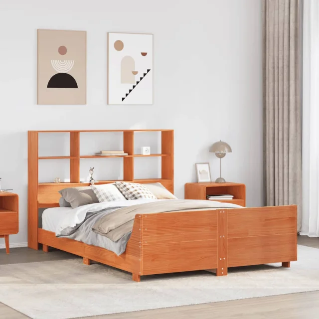 vidaXL Posteljni okvir brez vzmetnice voščeno rjav 120x190 cm borovina