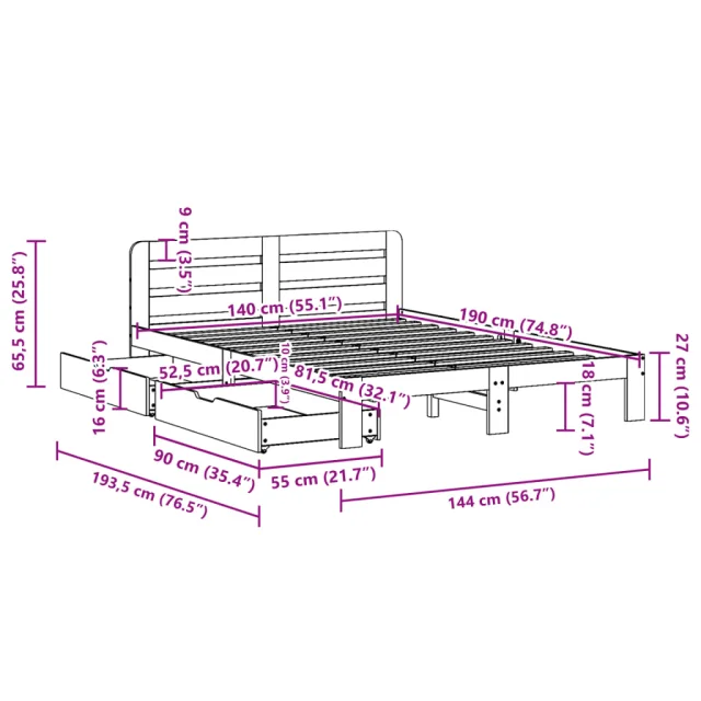 • Velikost primerne vzmetnice: 140 x 190 cm (Š x D) (vzmetnica ni priložena)