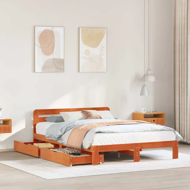 vidaXL Posteljni okvir brez vzmetnice voščeno rjav 140x190 cm borovina