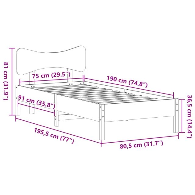 vidaXL Posteljni okvir brez vzmetnice voščeno rjav 75x190 cm borovina