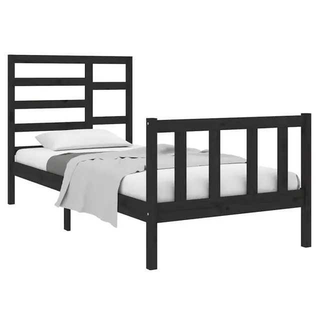 Ustvarite moderno spalnico s tem lesenim posteljnim okvirjem! To je praktičen in dekorativen dodatek za vaše notranje prostore. Vrhunska trdna borovina: Trdna borovina je čudovit naravni material. Borovina ima ravne vzorce, grče pa dajejo materialu njegov značilen, rustikalen videz.Močan posteljni okvir: Lesen okvir zagotavlja trdnost in stabilnost. Letvice iz vezanega lesa omogočajo dobro porazdelitev teže in zagotavljajo, da vzmetnica ostane na mestu ob vsakem zasuku in obračanju med spanjem.Privlačen dizajn: Vzglavje in vznožje sta oblikovana tako dekorativno kot tudi praktično. Dodaja edinstven stil in udobje.Primerna uporaba: Ta enojna postelja je odlična rešitev za majhne prostore, večnamenske sobe, enoposteljna ležišča in starejše otroke. Ne glede na vaše potrebe ali načrte ta enojna postelja ustreza različnim potrebam! Dobro je vedeti:Paket vsebuje samo posteljni okvir. Vzmetnica ni priložena. V naši trgovini si lahko ogledate ustrezne vzmetnice.Nekateri deli vzglavja so zaradi prostorskih omejitev zapakirani v škatlah v okvirju postelje.Ta posteljni okvir je primeren za vzmetnico velikosti 75 x 190 cm (2FT6 Small Single).Barva: ČrnaMaterial posteljnega okvirja: Trdna borovinaMaterial letvic: Vezan lesCelotne dimenzije: 195,5 x 81 x 104 cm (D x Š x V)Dimenzije vzglavja: 81 x 4 x 104 cm (Š x G x V)Velikost primerne vzmetnice: 75 x 190 cm (Š x D) (2FT6 Small Single) (vzmetnica ni priložena)Potrebno sestavljanje: DaPaket vsebuje:1 x Posteljni okvir1 x Vzglavje1 x Vznožje 3105889