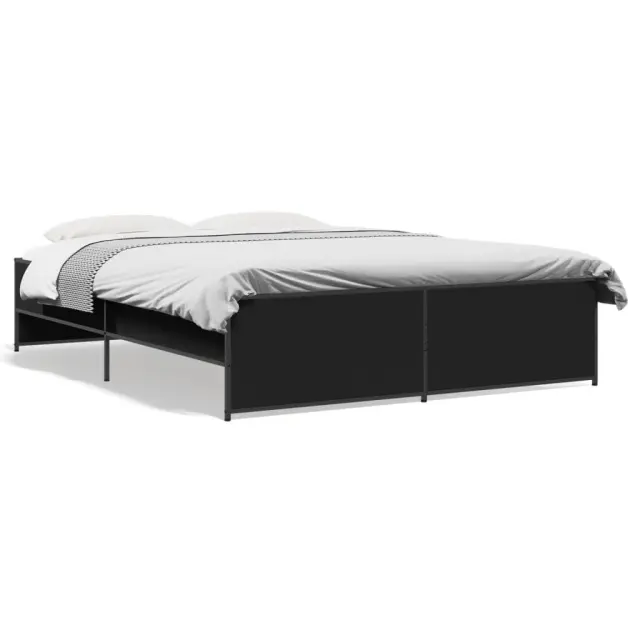 vidaXL Posteljni okvir črn 140x200 cm inženirski les in kovina