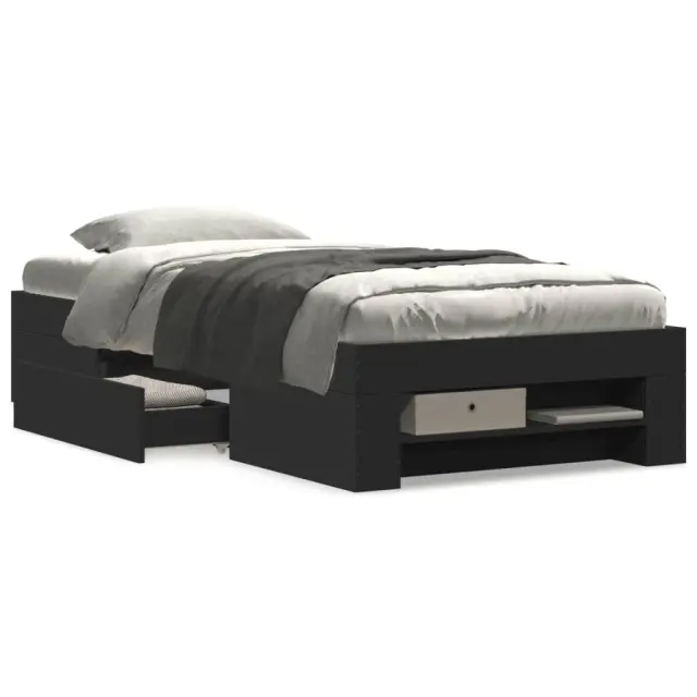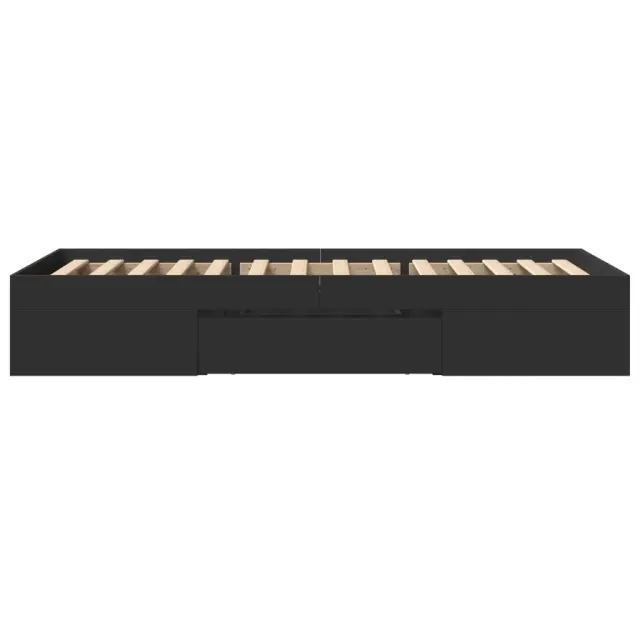 Zagotovite si boljši spanec s tem posteljnim okvirjem! Je prijeten dodatek za vsako spalnico. Vzdržljiv material: Posteljni okvir je izdelan iz inženirskega lesa. Inženirski les se ponaša z izjemno kakovostjo, gladko površino ter močjo, stabilnostjo in odpornostjo na vlago.Podnožje z letvami za optimalno podporo: Za podporo in zračnost ležišča je posteljni okvir opremljen z letvenim dnom.Funkcija shranjevanja: Ta posteljni okvir ima predale in odprte predelke za dobro organizacijo revij, knjig, igrač in drugih manjših predmetov. Dobro je vedeti:Vzmetnica ni priložena tej postelji. Ponujamo različno izbiro ležišč. V naši trgovini si lahko ogledate ustrezne vzmetnice.Barva: ČrnaMaterial posteljnega okvirja: Inženirski lesMaterial letvic: Vezan lesCelotne dimenzije: 193 x 93 x 33 cm (D x Š x V)Dimenzije predelkov (vsak): 69 x 14,5 x 10 cm (D x Š x V)Dimenzije predalov (vsak): 79,5 x 28,5 x 18 cm (D x Š x V)Velikost primerne vzmetnice: 90 x 190 cm (Š x D) (vzmetnica ni priložena)Potrebno sestavljanje: Da 3295521