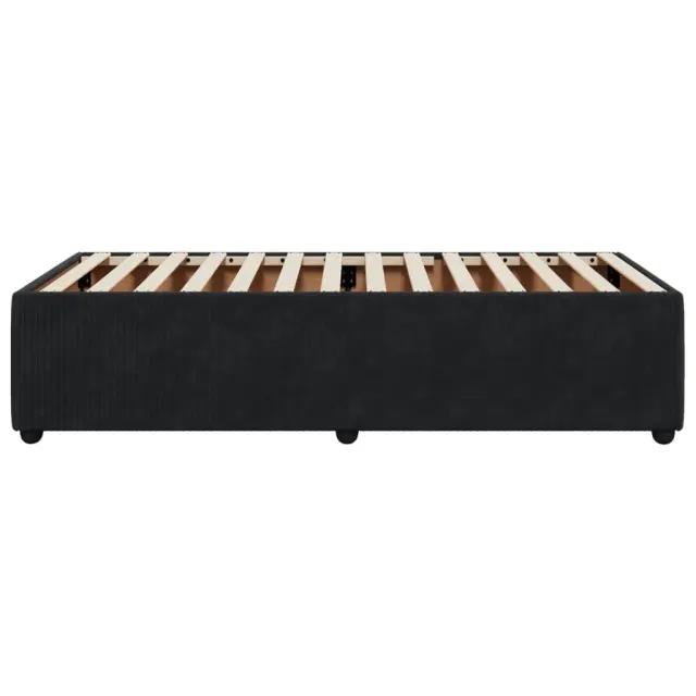 Zagotovite si boljši spanec s tem posteljnim okvirjem! Je prijeten dodatek za vsako spalnico. Mehak in udoben material: Vlažna tkanina iz žameta ima mehko in gladko površino, ki zagotavlja prijeten občutek ter vam zagotavlja toploto in popolno udobje.Letvice za optimalno podporo: Ta posteljni okvir je opremljen z letvicami, ki zagotavljajo osnovno podporo in zračnost vašega ležišča.Stabilne in vzdržljive noge: Ta postelja je podprta z robustnimi nogami, ki zagotavljajo stabilnost, varnost in trdnost. Dobro je vedeti:Vzmetnica ni priložena tej postelji. Ponujamo različno izbiro ležišč. V naši trgovini si lahko ogledate ustrezne vzmetnice.Barva: ČrnaMaterial: Žamet (100 % poliester), vezan les, konstruiran lesDimenzije: 200 x 90 x 46 cm (D x Š x V)Velikost primerne vzmetnice: 90 x 200 cm (Š x D) (vzmetnica ni priložena)Utrjene plastične nogicePotrebno sestavljanje: Da 3284984