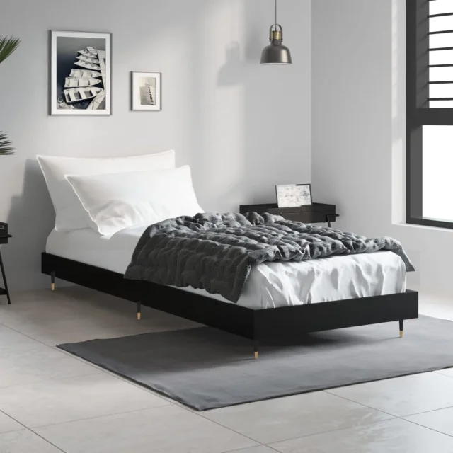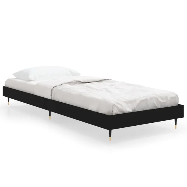 vidaXL Posteljni okvir črn 75x190 cm inženirski les