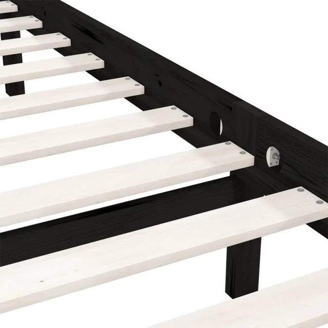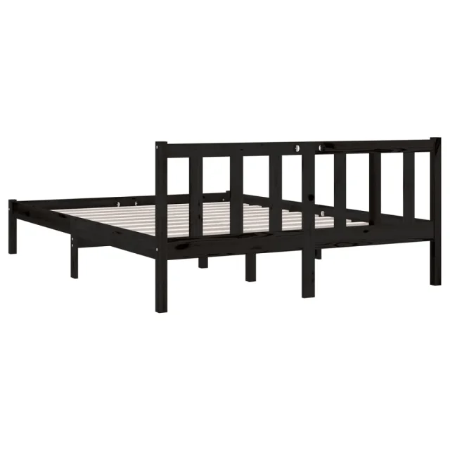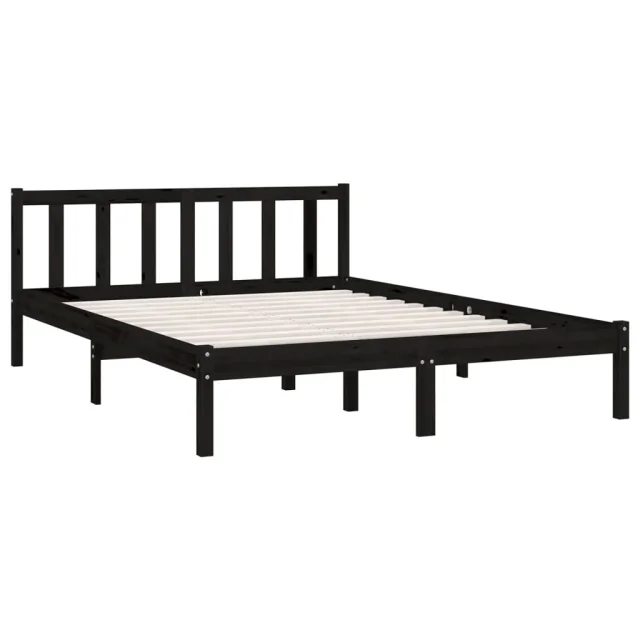 vidaXL Posteljni okvir črn iz trdne borovine 135x190 cm